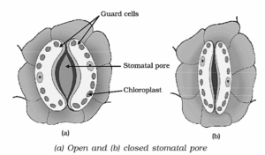 (iii) Stomata: They help in exchange of gases. Carbon dioxide needed in photosynthesis is taken in through stomata. Oxygen produced during photosynthesis is given out through stomata.