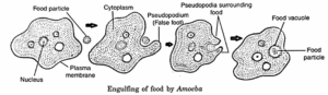 - After metabolism, when concentration of carbon dioxide increases inside the Amoeba than in the water, carbon dioxide diffuses out through plasma membrane.