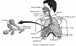 - During breathing, atmospheric air rich in O2 is taken into the body and the CO2 rich air is given out of the body.