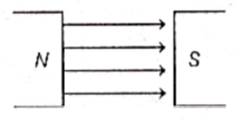 In a uniform magnetic field, the magnetic field lines of force are parallel and equidistant from each other as shown in the diagram.