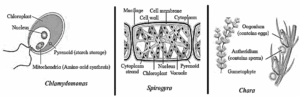 • Examples : Chlamydomonas, Spirogyra, Chara, Volvox, Ulothrix, etc.