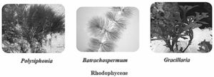• Examples : Chondrus, Batrachospermum, Porphyra, Gelidium, Gracillaria, Polyszphonia, etc.