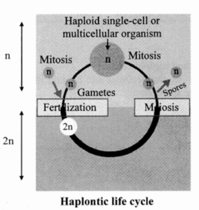 • In haplontic life cycle mitosis occurs in haploid cells.