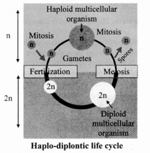 • In haplo-diplontic life cycle, mitosis occur in both diploid and haploid cells.