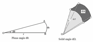 (i) Plane angle (dθ) : This is the ratio of the length of an arc of a circle to the radius of the circle