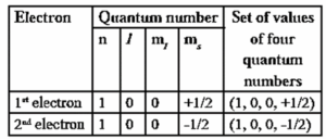 Statement of Pauli’s principle : No two electrons in an atom can have all the four quantum numbers, (n, l, m and s) same.