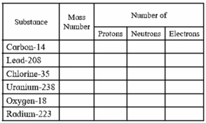 Complete the following information about the isotopes in the chart given below.