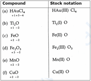 Compound Oxidation Number Stock Notation