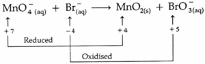 2MnO4(aq) + Br(aq) + H2O(l) →  2MnO2(aq) + BrO3(aq) + 2OH(aq)