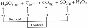 ∴ 2H2SO4 (aq) + C (s) → CO2 (g) + 2SO2 (g) + 2H2O (l)