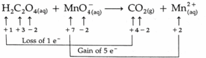 5H2C2O4 (aq) + 2MnO4 (aq) + 6H+ → 2Mn2+ + 8H2O  + 10CO2 (g)