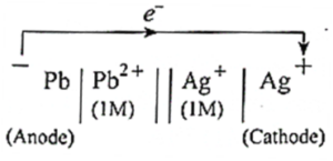 ∴ Ecell = \(E^0_{cell}-\frac{0.0592}{2}log_{10}\frac{[Cd^{2+}]}{[Cu^{2+}]}\) at 25 0C.