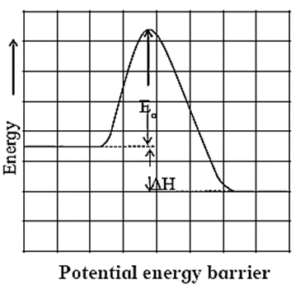 Activation energy : The energy required to form activated complex or transition state from the reactant molecules is called activation energy. OR- The height of energy barrier in the energy profile diagram is called activation energy.