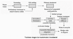 Sewage treatment : Before waste water is made available for human use, it has to be treated properly, so as to remove organic matter, inorganic salts and pathogens as well. Sewage treatment process includes four basic steps : Effluents from these digesters are released in natural water bodies like rivers and streams after chlorination which kills pathogenic bacteria. Digested sludge is then disposed.