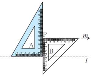 (3) As shown in the figure, place two set - squares touching each other. Hold set – squares A and B. One edge of set - square A is close to point P. Draw a line along the edge of B.