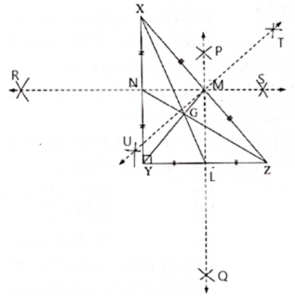 (ii) Draw the perpendicular bisector PQ of side YZ that intersect YZ at L.
