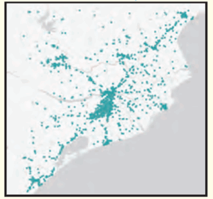 या पद्धतीत, नकाशावर टिंब (dots) लावून वेगवेगळ्या भौगोलिक घटकांचे वितरण दाखवले जाते.