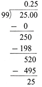 Answer is : \(\frac{25}{99}=0.\overline{25}\) |