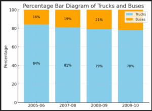 We need a Percentage Bar Diagram. That means for each year, we calculate what percent is Trucks and what percent is Buses out of the total.