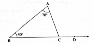 Question 1.1. In figure ACD is an exterior angle of Δ ABC. B = 40°, A = 70°. Find the measure of ACD.