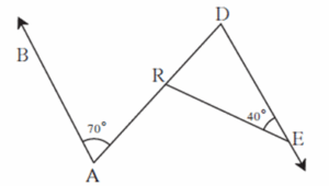 Question 1.6. In figure, line AB || line DE. Find the measures of DRE and ARE using given measures of some angles.