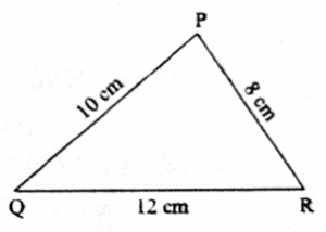 PQ = 10 cm, QR = 12 cm, PR = 8 cm      ... (Given)