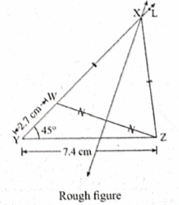 As shown in the rough figure, first we draw seg YZ of length 7.4 cm. We draw ray YL such that ∠LYZ = 45°.