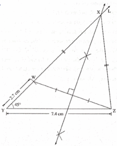 Question 2.1. Construct Δ XYZ, such that YZ = 7.4 cm, ∠XYZ = 45° and XY - XZ = 2.7 cm.