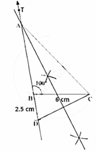 - Take point D on opposite ray of BT such that l(BD) = 2.5 cm.