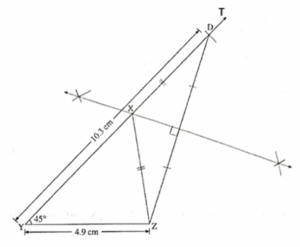 Question 1. Construct Δ XYZ, such that XY + XZ = 10.3 cm, YZ = 4.9 cm, ∠XYZ = 45°.