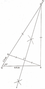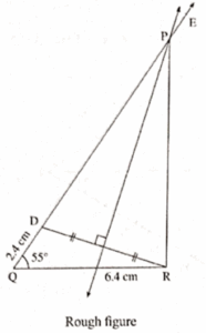 Question 4. Construct Δ PQR, in which PQ - PR = 2.4 cm, QR = 6.4 cm and ∠PQR = 55°.