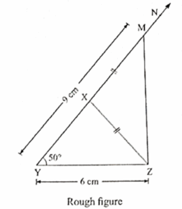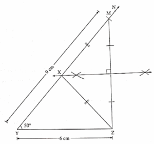Question1.2. Construct Δ XYZ, in which YZ = 6 cm, XY + XZ = 9 cm. ∠XYZ = 50°