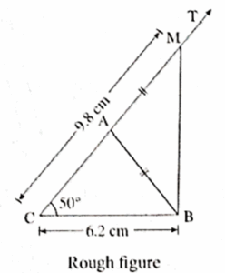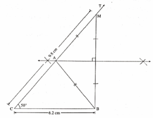 Question 1.3. Construct Δ ABC, in which BC = 6.2 cm, ∠ACB = 50°, AB + AC = 9.8 cm