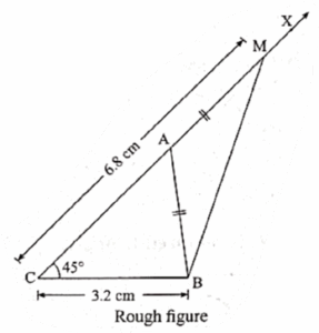 BC= 3.2 cm, ∠ACB = 45° and AB + AC = 6.8 cm ... (i)